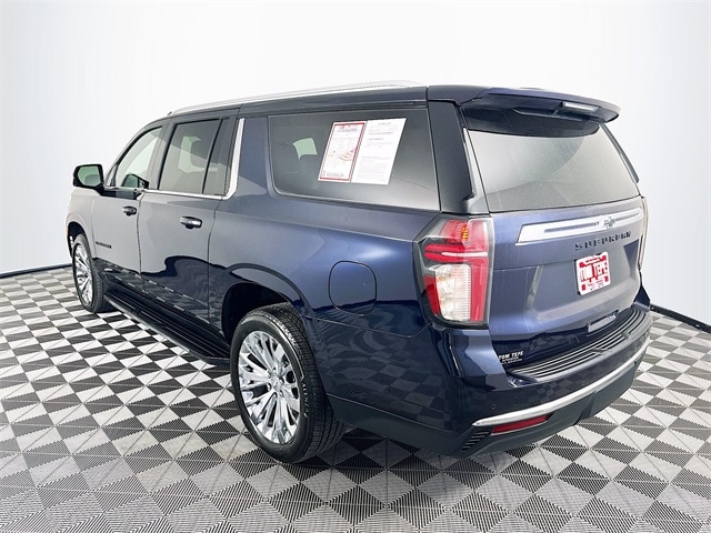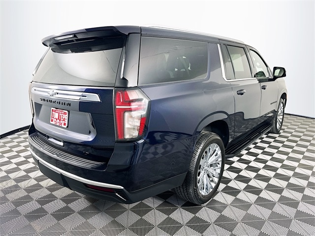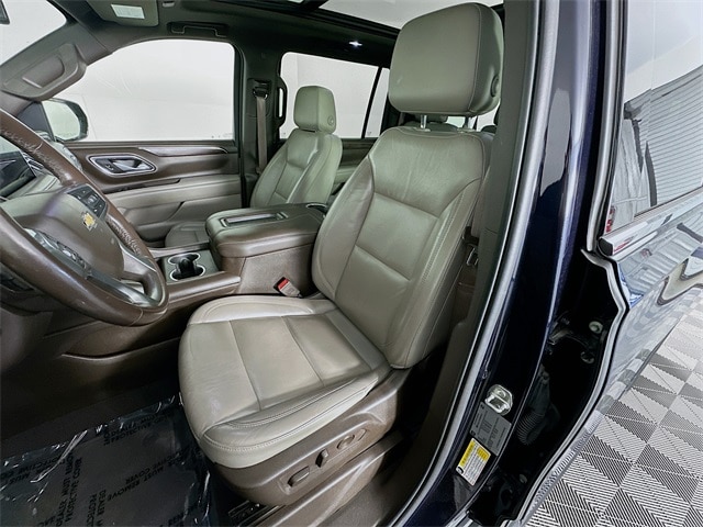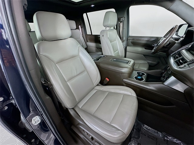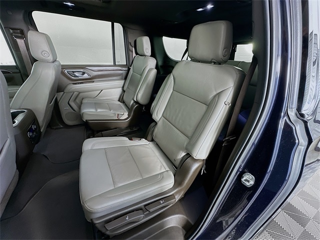 2021 Chevrolet Suburban LT 10-Speed Automatic with Overdrive EcoTec3 5.3L V8 Midnight Blue Metallic Carfax One-Owner, Suburban LT, EcoTec3 5.3L V8, 10-Speed Automatic with Overdrive, 4WD, Midnight Blue Metallic, Gideon/Very Dark Atmosphere Leather, 10-Way Power Driver & Passenger Seat Adjusters, 2 USB Data Ports, 2-Speed Active Electronic AutoTrac Transfer Case, 2nd Row Pwr Release 60/40 Split-Folding Bench Seat, 3rd Row 60/40 Power-Folding Split-Bench, 4-Wheel Disc Brakes, ABS brakes, Advanced Trailering Package, Advanced Trailering System, Apple CarPlay/Android Auto, Auto High-beam Headlights, Auto-Dimming Inside Rear-View Mirror, Automatic Heated Steering Wheel, Automatic temperature control, Bose 9-Speaker Stereo Audio System Feature, Brake assist, Bright Front & Rear Door Sill Plates, Driver & Front Outboard Passenger Airbags, Driver Alert Package, Dual front impact airbags, Dual front side impact airbags, Dual-Pane Power Panoramic Sunroof, Electronic Stability Control, Emergency communication system: OnStar and Chevrolet connected services capable, Extra Capacity Cooling System, Floor Console w/Storage Area, Four wheel independent suspension, Front & Rear Park Assist, Fully automatic headlights, Hands-Free Rear Power Programmable Liftgate, HD Radio, HD Surround Vision, Heated 2nd Row Outboard Seats, Heated Driver & Front Passenger Seats, Hitch Guidance w/Hitch View, Infotainment Display, Integrated Trailer Brake Controller, Lane Keep Assist w/Lane Departure Warning, Leather Seating Surfaces, Leather-Wrapped Steering Wheel, LED Daytime Running Lamps, Low tire pressure warning, LT Signature Package, Luxury Package, Max Trailering Package, Memory Settings, Memory Settings For Driver, Outside Heated Power-Adjustable Mirrors, Outside temperature display, Overhead console, Power driver seat, Power Liftgate, Power steering, Power Tilt & Telescopic Steering Column, Power windows, Preferred Equipment Group 1LT, Premium Smooth Ride Suspension, Rain sensing wipers, Rear air conditioning, Rear Cross Traffic Alert, Rear Pedestrian Alert, Rear window wiper, Remote keyless entry, Remote Start, Security system, SiriusXM Radio w/360L, Speed control, Speed-sensing steering, Steering wheel mounted audio controls, Tachometer, Telescoping steering wheel, Tilt steering wheel, Traction control, Trip computer, Universal Home Remote, Variably intermittent wipers, Wheels: 20" x 9" Painted Aluminum.