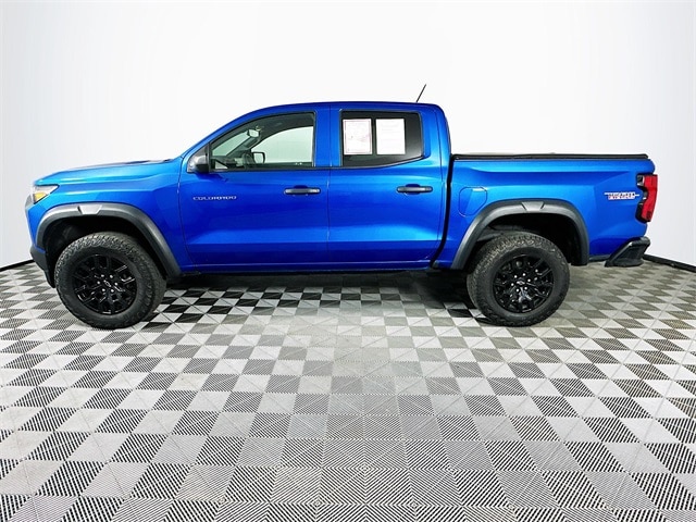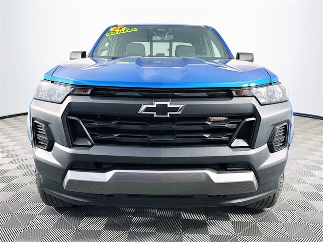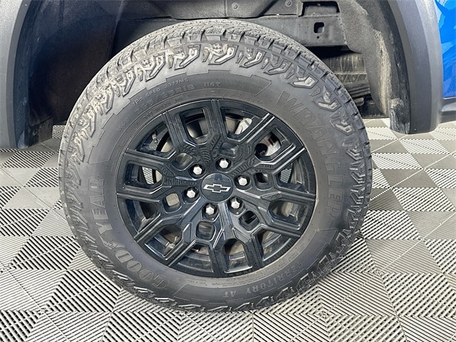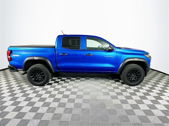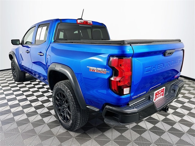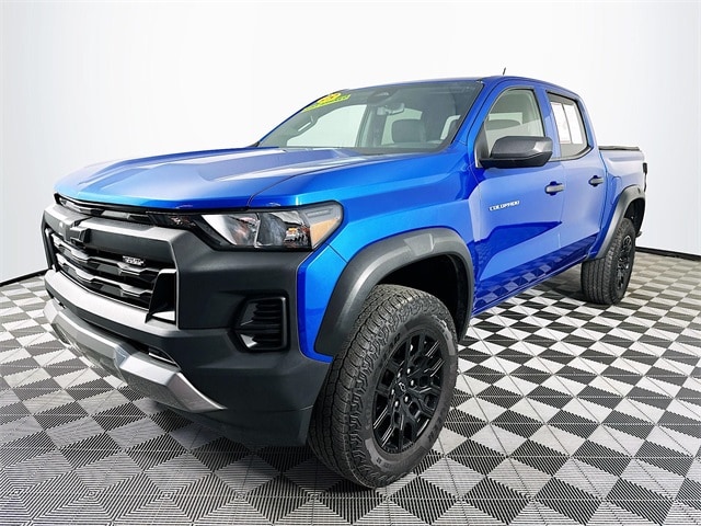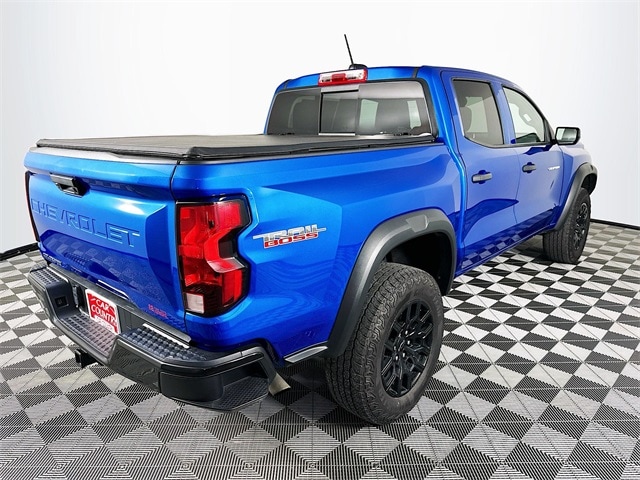 2023 Chevrolet Colorado Trail Boss 8-Speed Automatic 2.7L Turbo Glacier Blue Metallic Colorado Trail Boss, 4D Crew Cab, 2.7L Turbo, 8-Speed Automatic, 4WD, Glacier Blue Metallic, Jet Black w/Cloth Seat Trim, 220 Amp Generator, 3.42 Rear Axle Ratio, 4-Wheel Disc Brakes, 6-Speaker Audio System Feature, 8-Way Power Driver Seat Adjuster, ABS brakes, Advanced Trailering Package, Air Conditioning, Apple CarPlay/Android Auto, Auto High-beam Headlights, Automatic Emergency Braking, Black Spray-On Bedliner w/Chevrolet Logo, Brake assist, Chevy Safety Assist, Dual front impact airbags, Dual front side impact airbags, Electronic Automatic Cruise Control, Electronic Stability Control, EZ-Lift & Lower Tailgate, Following Distance Indicator, Forward Collision Alert, Front Center Armrest, Front Pedestrian & Bicyclist Braking, Front wheel independent suspension, Heavy-Duty Trailering Package, Integrated Trailer Brake Controller, IntelliBeam Automatic High Beam On/Off, Lane Keep Assist w/Lane Departure Warning, Low tire pressure warning, Manual Rear-Sliding Window, Navigation System, Occupant sensing airbag, Outside temperature display, Overhead airbag, Overhead console, Power door mirrors, Power Driver Lumbar Control Seat Adjuster, Power steering, Power windows, Preferred Equipment Group 0TR, Radio: 11.3" Diagonal Advanced Color LCD Display, Rear step bumper, Rear-Window Electric Defogger, Remote keyless entry, Security system, SiriusXM Radio, Speed-sensing steering, Steering Wheel Mounted Audio Controls, Steering wheel mounted audio controls, StowFlex Tailgate Storage Compartment, Tailgate Keyed Cylinder Lock, Tilt steering wheel, Traction control, Trail Boss Convenience Package, Trail Boss Convenience Package II, Trailering App, Variably intermittent wipers, Wheels: 18" x 8.5" Black High Gloss Aluminum, Wireless Phone Projection.