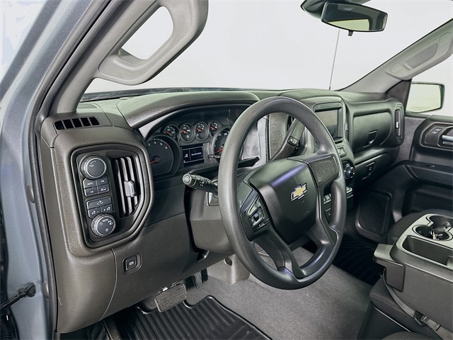Finished in Sterling Gray Metallic, this Silverado 1500 Custom blends bold style with real-world muscle. The 2.7L Turbo engine and 8-speed automatic deliver strong low-end torque for towing, hauling, or just zipping onto I-74, while the high-capacity suspension package, auto-locking rear differential, and 4-wheel disc brakes keep things confident on job sites, gravel lanes, and city streets.