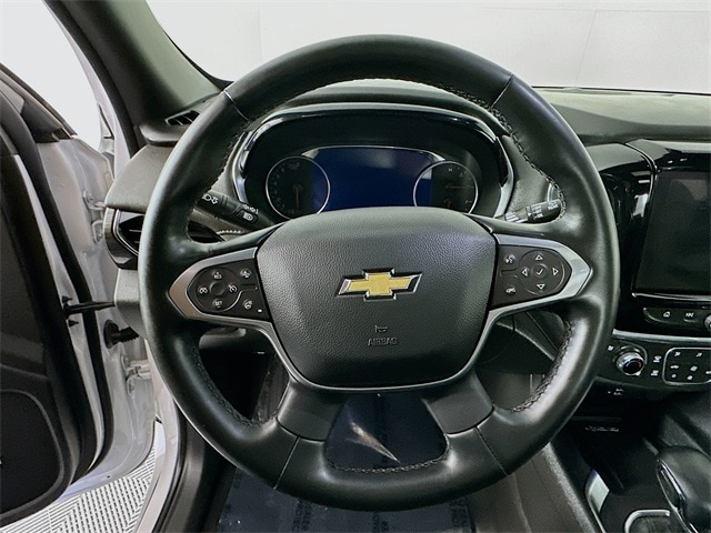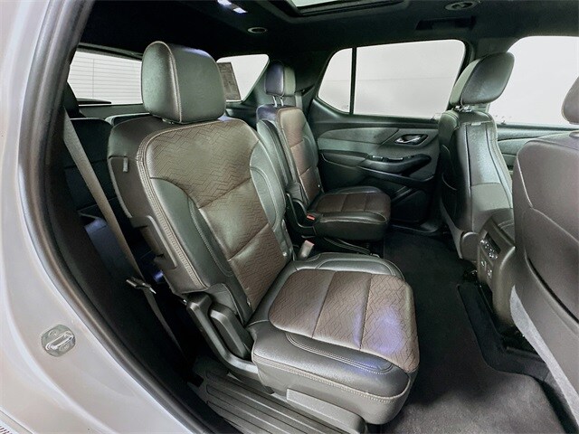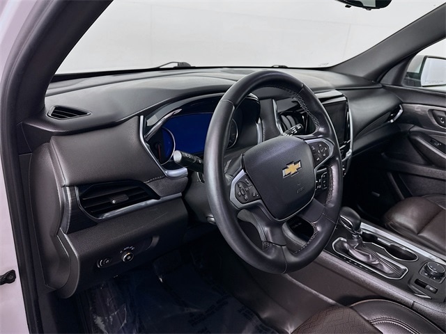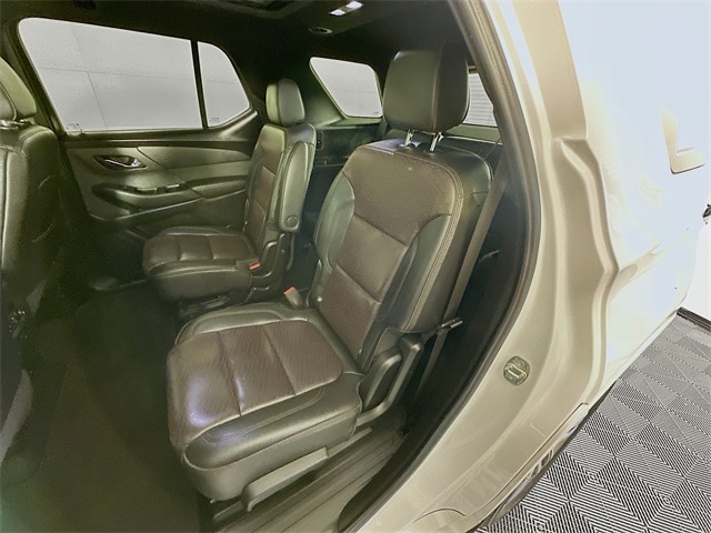 Inside is where this Traverse really spoils you. Perforated leather-appointed seating, heated and ventilated front seats, and heated 2nd-row outboard seats turn every commute into first-class travel. The 8-way power driver seat with lumbar, memory seat, and 6-way power front passenger seat let you dial in the perfect driving position and keep it saved, even if drivers rotate.
