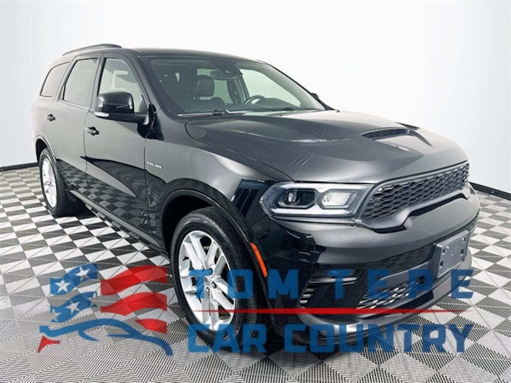 2023 Dodge Durango R/T Plus 8-Speed Automatic HEMI 5.7L V8 Multi Displacement VVT DB Black Crystal Clearcoat **RECENT ARRIVAL**, Carfax One-Owner, Durango R/T Plus, HEMI 5.7L V8 Multi Displacement VVT, 8-Speed Automatic, AWD, DB Black Crystal Clearcoat, Black w/Leather Trimmed Bucket Seats, 115V Auxiliary Power Outlet, 3rd row seats: split-bench, 4-Wheel Disc Brakes, 7 & 4 Pin Wiring Harness, 9 Speakers, ABS brakes, Adaptive Cruise Control w/Stop, Apple CarPlay/Android Auto, Auto High-beam Headlights, Auto-Dimming Exterior Driver Mirror, Auto-dimming Rear-View mirror, Auto-leveling suspension, Automatic temperature control, Brake assist, Class IV Receiver Hitch, Dual front impact airbags, Dual front side impact airbags, Electronic Stability Control, Emergency communication system: SiriusXM Guardian, Exterior Mirrors w/Heating Element, Exterior Mirrors w/Memory, Exterior Mirrors w/Supplemental Signals, Four wheel independent suspension, Full Speed Forward Collision Warning Plus, Fully automatic headlights, Garage door transmitter, Heated door mirrors, Heated front seats, Heated Second Row Seats, Heated steering wheel, Knee airbag, Leather steering wheel, Leather Trimmed Bucket Seats, Leather Wrapped Door Panels, Low tire pressure warning, Navigation system: TomTom, Occupant sensing airbag, Outside temperature display, Overhead airbag, Overhead console, ParkView Rear Back-Up Camera, Power 6x9 Multi-Function Foldaway Mirrors, Power 8-Way Driver Memory 8-Way Passenger Seats, Power driver seat, Power Driver/Passenger 4-Way Lumbar Adjust, Power Liftgate, Power steering, Power Sunroof, Power Tilt & Telescopic Steering Column, Power windows, Premium LED Fog Lamps, Radio: Uconnect 5 Nav w/10.1" Display, Radio/Driver Seat/Mirrors Memory, Rain sensing wipers, Rear air conditioning, Rear Load Leveling Suspension, Red Accent Stitching, Remote keyless entry, Security system, Speed-sensing steering, Speed-Sensitive Wipers, Sport steering wheel, Steering wheel mounted audio controls, Tachometer, Telescoping steering wheel, Tilt steering wheel, Traction control, Trailer Brake Control, Variably intermittent wipers, Ventilated Front Seats, Wheels: 20" x 8.0" Fine Silver.