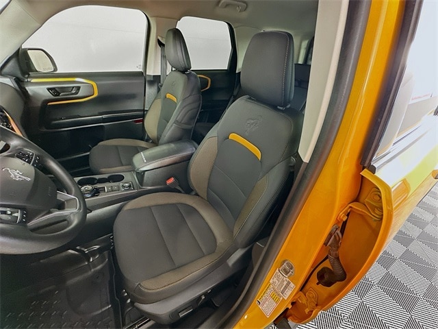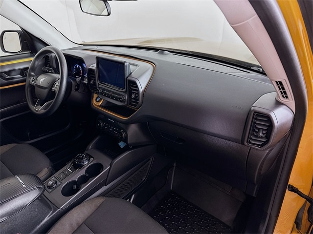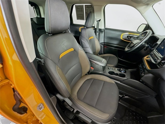 2021 Ford Bronco Sport Badlands 8-Speed Automatic EcoBoost 2.0L I4 GTDi DOHC Turbocharged VCT Cyber Orange Metallic Tricoat Odometer is 3929 miles below market average! Bronco Sport Badlands, EcoBoost 2.0L I4 GTDi DOHC Turbocharged VCT, 8-Speed Automatic, 4WD, Cyber Orange Metallic Tricoat, Ebony/Active Orange w/Unique Cloth Heated Sport Contour Bucket Seats, 3.80 Axle Ratio, 4-Wheel Disc Brakes, 6 Speakers, ABS brakes, Automatic temperature control, Brake assist, Cargo Management System, Class II Trailer Tow Package w/Trailer Sway Control, Dual front impact airbags, Dual front side impact airbags, Electronic Stability Control, Emergency communication system: SYNC 3 911 Assist, Exterior Parking Camera Rear, Four wheel independent suspension, Front Bucket Seats, Front Center Armrest, Front fog lights, Fully automatic headlights, Heated door mirrors, Heated front seats, Knee airbag, Low tire pressure warning, Occupant sensing airbag, Outside temperature display, Overhead airbag, Overhead console, Power door mirrors, Power driver seat, Power steering, Power windows, Rear window wiper, Remote keyless entry, Security system, Speed control, Speed-sensing steering, Speed-Sensitive Wipers, Steering wheel mounted audio controls, SYNC 3 Communications & Entertainment System, Tachometer, Telescoping steering wheel, Tilt steering wheel, Traction control, Trip computer, Unique Cloth Heated Sport Contour Bucket Seats, Variably intermittent wipers, Wheels: 17" Carbonized Gray-Painted Aluminum.