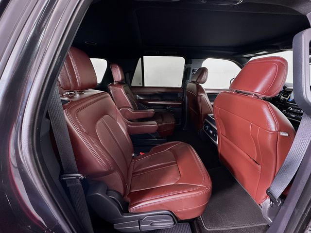 The exterior of this Expedition Max Limited exudes a bold and commanding presence, with a striking Gray finish and a host of premium features. The Ebony Black Mesh Grille, Bright Chrome Bars, and Chrome Inserts add a touch of sophistication, while the Magnetic-Painted Power Deployable Running Boards and 22-inch 12-Spoke Polished Aluminum Wheels enhance its visual appeal.