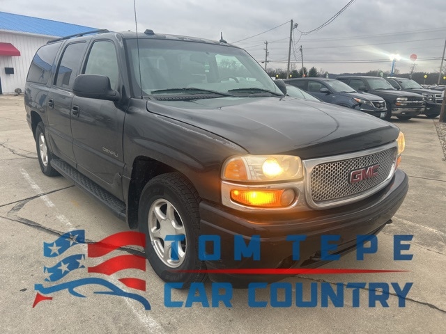 2005 GMC Yukon XL Denali 4-Speed Automatic HD with Overdrive Vortec 6.0L V8 SFI Black Onyx Recent Arrival! AWD, 17" x 7" Polished Cast Aluminum Wheels, 2 Middle Reclining Heated Captain's Bucket Seats, 3.73 Rear Axle Ratio, 3rd row seats: bench, 4-Wheel Disc Brakes, 60/40 Split-Folding Middle Bench Seat, 9 Speakers, ABS brakes, Adjustable pedals, Auto-dimming door mirrors, Auto-dimming Rear-View mirror, Auto-leveling suspension, Automatic temperature control, Autoride Suspension Package, Cargo Net, Cargo Package, Dual front impact airbags, Dual front side impact airbags, Electronic Stability Control, Emergency communication system: OnStar, ETR AM/FM Stereo w/CD & Cassette, ETR AM/FM Stereo w/CD/Integrated Navigation, Front fog lights, Front wheel independent suspension, Full-Feature Power Reclining Bucket Seats, Fully automatic headlights, Garage door transmitter: HomeLink, Heated door mirrors, Heated front seats, Heated rear seats, HomeLink Wireless Control System, Leather steering wheel, Low tire pressure warning, Luggage Rack Center Rails, Memory seat, Nuance Leather Appointed Seat Trim, Occupant sensing airbag, Outside temperature display, Overhead console, Passenger seat mounted armrest, Pedal memory, Power door mirrors, Power driver seat, Power passenger seat, Power steering, Power Tilt-Sliding Sunroof w/Express-Open, Power windows, Preferred Equipment Group 1SF, Rear air conditioning, Rear seat center armrest, Rear window wiper, Rear-Seat DVD Entertainment System, Remote keyless entry, Roof rack, Security system, Speed control, Steering wheel mounted audio controls, Sun, Entertainment & Destinations Package, Tachometer, Tilt steering wheel, Traction control, Trip computer, Turn signal indicator mirrors, Variably intermittent wipers.