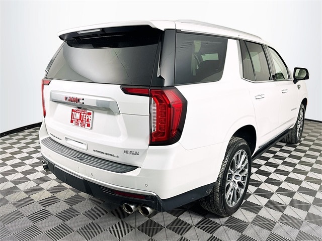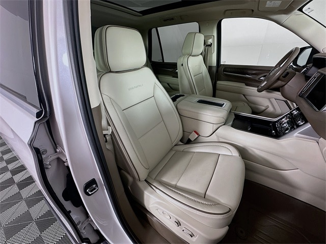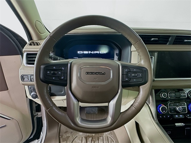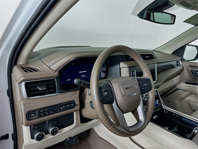 2022 GMC Yukon Denali 10-Speed Automatic with Overdrive EcoTec3 6.2L V8 White Frost Tricoat 4WD, 15" Diagonal Multi-Color Head-Up Display, 2 Presets For Outside Rearview Mirrors, 3 Years of GMC Connected Services, 3rd Row 60/40 Power-Folding Split-Bench Seat, 4-Wheel Disc Brakes, ABS brakes, Adaptive suspension, Apple CarPlay/Android Auto, Auto High-beam Headlights, Auto-dimming Rear-View mirror, Auto-leveling suspension, Automatic Emergency Braking, Automatic Stop/Start, Automatic temperature control, Bose 14-Speaker Surround w/CenterPoint, Brake assist, Bright Front & Rear Door Sill Plates, Chrome Door Handles w/Body-Color Strip, Dual Exhaust System, Dual front impact airbags, Dual front side impact airbags, Dual-Pane Panoramic Power Sunroof, Electronic Stability Control, Emergency communication system: OnStar and GMC Connected Services capable, Floor Console, Forward Collision Alert, Four wheel independent suspension, Front & Rear Park Assist, Front fog lights, Fully automatic headlights, Galvano Bodyside Moldings, Garage door transmitter, Hands-Free Power Programmable Rear Liftgate, HD Surround Vision, Heated & Ventilated Driver & Front Passenger Seats, Heated 2nd Row Outboard Position Seats, Heated Driver & Front Passenger Seats, Heated front seats, Heated rear seats, Heated Steering Wheel, Hill Descent Control, Inside Rear-View Auto-Dimming Mirror, Lane Change Alert w/Side Blind Zone Alert, Lane Keep Assist w/Lane Departure Warning, Low tire pressure warning, Magnetic Ride Control Suspension, Occupant sensing airbag, Outside Heated Power-Adjustable Mirrors, Outside temperature display, Overhead airbag, Overhead console, Perforated Leather Seating Surfaces, Power Liftgate, Power Release 2nd Row Bucket Seats, Power Tilt & Telescopic Steering Column, Power-Retractable Assist Steps, Preferred Equipment Group 5SA, Rain sensing wipers, Rear air conditioning, Rear Pedestrian Alert, Rear window wiper, Safety Alert Seat, Security system, Speed control, Speed-sensing steering, Start/Stop System Disable Button, Telescoping steering wheel, Tilt steering wheel, Traction control, Universal Home Remote, Variably intermittent wipers, Wheels: 22" Bright Chrome (LPO), Wheels: 22" x 9" Steel Interim (LPO), Wireless Charging.