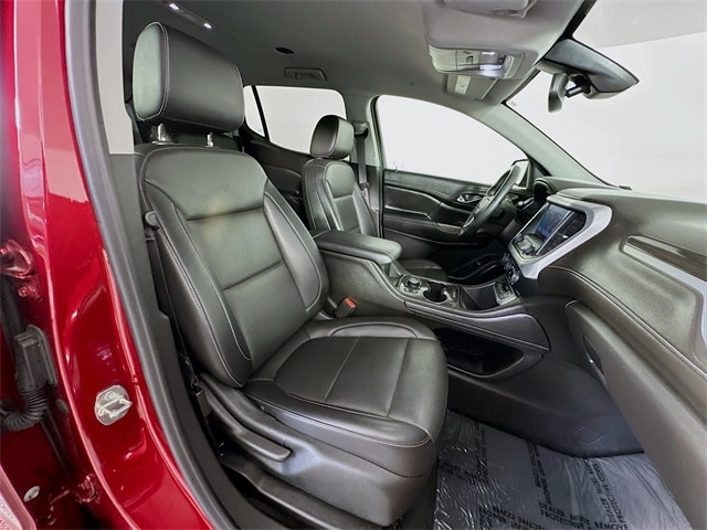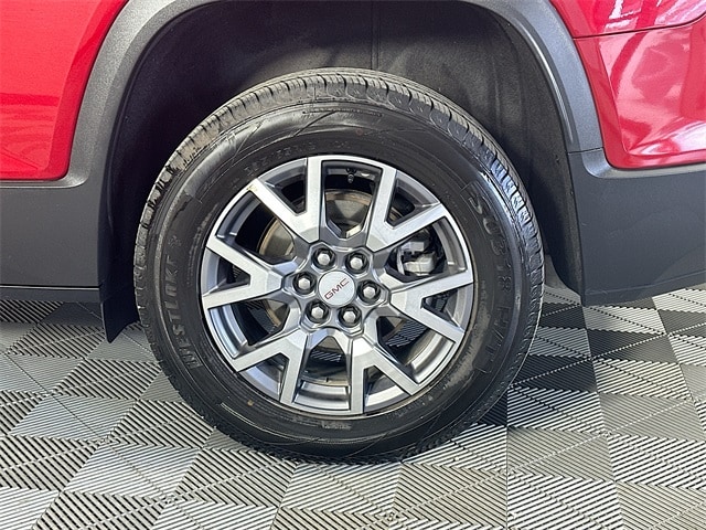 Dressed in Volcanic Red Tintcoat, this Acadia SLT turns heads with its athletic stance, elegant lines, and chrome-accented 18" Aluminum Wheels. Inside, youre surrounded by Jet Black perforated leather-appointed seating across a 6-passenger layout (2-2-2) that balances space and style for kids, colleagues, or cargo.