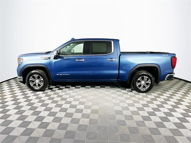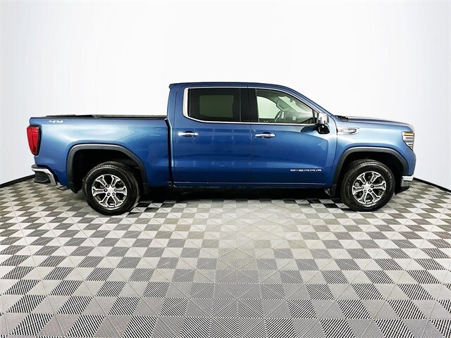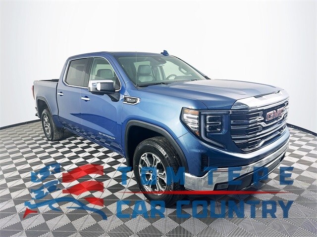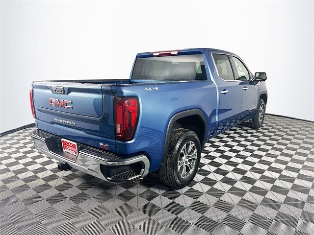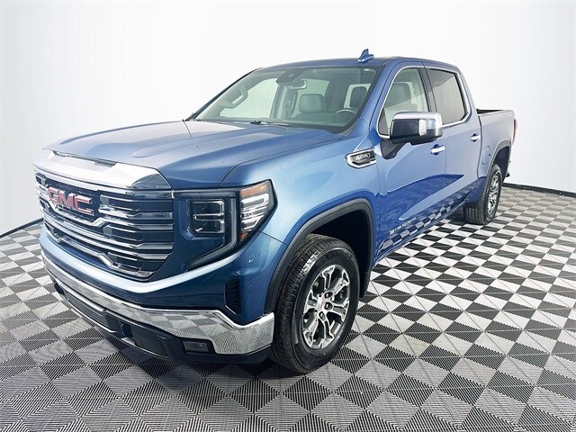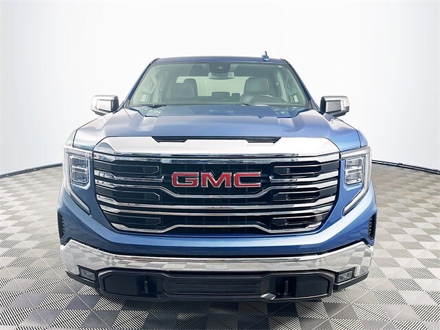 2024 GMC Sierra 1500 SLT 10-Speed Automatic EcoTec3 5.3L V8 Downpour Metallic Sierra 1500 SLT, 4D Crew Cab, EcoTec3 5.3L V8, 10-Speed Automatic, 4WD, Downpour Metallic, Jet Black w/Forge Perforated Leather Seat Trim, 10-Way Power Driver Seat Adjuster w/Lumbar, 10-Way Power Passenger Seat Adjuster w/Lumbar, 120-Volt Bed Mounted Power Outlet, 120-Volt Interior Power Outlet, 170 Amp Alternator, 2 Charge/Data USB Ports, 2 Type-C Charge-Only Rear USB Ports, 4-Wheel Disc Brakes, 6-Speaker Audio System Feature, ABS brakes, Apple CarPlay/Android Auto, Auto High-beam Headlights, Auto-dimming door mirrors, Auto-dimming Rear-View mirror, Auto-Locking Rear Differential, Automatic Emergency Braking, Automatic temperature control, Auxiliary External Transmission Oil Cooler, Brake assist, Chrome Header & Chrome Grille Insert Bars, Color-Keyed Carpeting Floor Covering, Deep-Tinted Glass, Dual front impact airbags, Dual front side impact airbags, Electric Rear-Window Defogger, Electronic Stability Control, Following Distance Indicator, Forward Collision Alert, Front fog lights, Front Frame-Mounted Black Recovery Hooks, Front Rain-Sensing Wipers, Front wheel independent suspension, Fully automatic headlights, GMC Connected Access Capable, HD Rear Vision Camera, Heated door mirrors, Heated Driver & Front Outboard Passenger Seating, Heated front seats, Heated steering wheel, Hitch Guidance, IntelliBeam Automatic High Beam On/Off, Keyless Open & Start, Lane Keep Assist w/Lane Departure Warning, LED Cargo Area Lighting, Manual Tilt-Wheel & Telescoping Steering Column, Navigation System, Occupant sensing airbag, OnStar & GMC Connected Services Capable, Outside temperature display, Overhead airbag, Overhead console, Perf Leather-Appointed Front Outboard Seat Trim, Perimeter Lighting, Power Door Locks, Power door mirrors, Power Front Passenger Windows w/Express Up/Down, Power Front Windows w/Driver Express Up/Down, Power Rear Windows w/Express Down, Preferred Equipment Group 4SA, Premium audio system: GMC Infotainment System, Push Button Start, Rain sensing wipers, Rear seat center armrest, Rear step bumper, Remote Vehicle Starter System, SiriusXM w/360L, Speed control, Speed-sensing steering, Steering Wheel Audio Controls, Tachometer, Telescoping steering wheel, Theft Deterrent System (Unauthorized Entry), Tilt steering wheel, Traction control, Trailering Package, Variably intermittent wipers, Wheels: 18" x 8.5" 6-Spoke Machined Aluminum, Wi-Fi Hotspot Capable, Wireless Apple CarPlay/Wireless Android Auto.