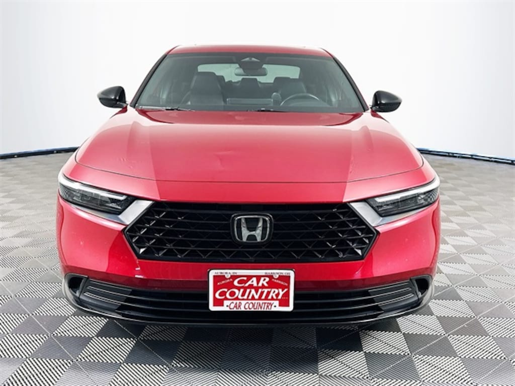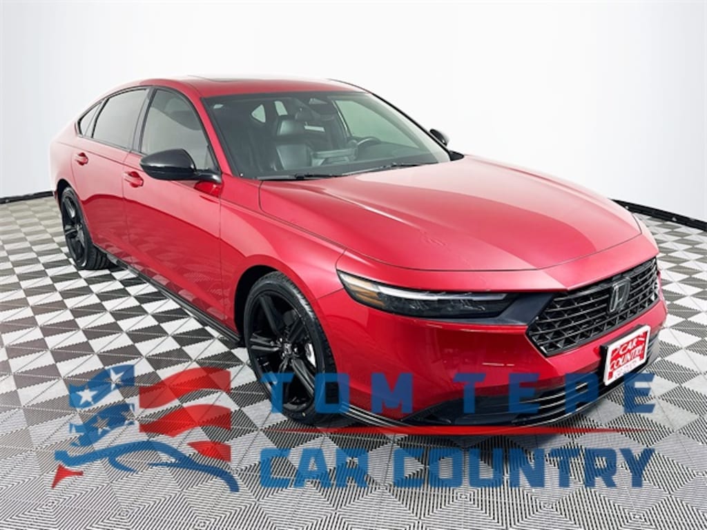2023 Honda Accord Hybrid Sport-L eCVT 2.0L 16V DOHC Radiant Red Metallic **RECENT ARRIVAL**, Bluetooth, Accord Hybrid Sport-L, 2.0L 16V DOHC, Radiant Red Metallic, Black w/Leather-Trimmed Seat Trim, 4-Wheel Disc Brakes, 8 Speakers, ABS brakes, Adaptive Cruise Control: Adaptive Cruise Control (ACC) with Low-Speed Follow, Apple CarPlay/Android Auto, Auto High-beam Headlights, Automatic temperature control, Blind Spot Information (BSI) System warning, Brake assist, Dual front impact airbags, Dual front side impact airbags, Electronic Stability Control, Emergency communication system: HondaLink, Exterior Parking Camera Rear, Four wheel independent suspension, Front Center Armrest, Fully automatic headlights, Heated Front Bucket Seats, Knee airbag, Lane departure: Lane Keeping Assist System (LKAS) active, Leather Shift Knob, Leather steering wheel, Leather-Trimmed Seat Trim, Low tire pressure warning, Memory seat, Occupant sensing airbag, Outside temperature display, Overhead airbag, Overhead console, Power door mirrors, Power driver seat, Power moonroof, Power passenger seat, Power steering, Power windows, Radio: 180-Watt Audio System, Rear anti-roll bar, Rear side impact airbag, Remote keyless entry, Security system, Speed-sensing steering, Speed-Sensitive Wipers, Steering wheel mounted audio controls, Telescoping steering wheel, Tilt steering wheel, Traction control, Trip computer, Variably intermittent wipers, Wheels: 19" x 8.5J Matte Berlina Black.
