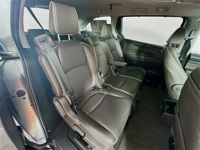 2024 Honda Odyssey Elite 10-Speed Automatic 3.5L V6 SOHC i-VTEC 24V Lunar Silver Metallic Odometer is 26911 miles below market average! Odyssey Elite, 3.5L V6 SOHC i-VTEC 24V, 10-Speed Automatic, Lunar Silver Metallic, Black w/Leather Seat Trim, 11 Speakers, 3.61 Axle Ratio, 3rd row seats: split-bench, 4-Wheel Disc Brakes, A/V remote: CabinControl, ABS brakes, Adaptive Cruise Control: Adaptive Cruise Control (ACC) with Low-Speed Follow, Apple CarPlay/Android Auto, Auto-dimming door mirrors, Auto-dimming Rear-View mirror, Automatic temperature control, Blind Spot Information (BSI) System warning, Brake assist, Dual front impact airbags, Dual front side impact airbags, Electronic Stability Control, Emergency communication system: HondaLink, Exterior Parking Camera Rear, Four wheel independent suspension, Front Bucket Seats, Front fog lights, Fully automatic headlights, Garage door transmitter: HomeLink, Heated door mirrors, Heated Front Bucket Seats, Heated front seats, Knee airbag, Lane departure: Lane Keeping Assist System (LKAS) active, Leather Seat Trim, Leather steering wheel, Low tire pressure warning, Memory seat, Navigation system: Honda Satellite-Linked Navigation System, Occupant sensing airbag, Outside temperature display, Overhead airbag, Overhead console, Power door mirrors, Power driver seat, Power moonroof, Power passenger seat, Power steering, Power windows, Radio: 500-Watt AM/FM/HD Premium Audio System, Rain sensing wipers, Rear air conditioning, Rear window wiper, Reclining 3rd row seat, Remote keyless entry, Security system, Speed-sensing steering, Speed-Sensitive Wipers, Steering wheel mounted audio controls, Telescoping steering wheel, Tilt steering wheel, Traction control, Turn signal indicator mirrors, Variably intermittent wipers, Wheels: 19" Unique Machine-Finished Alloy.