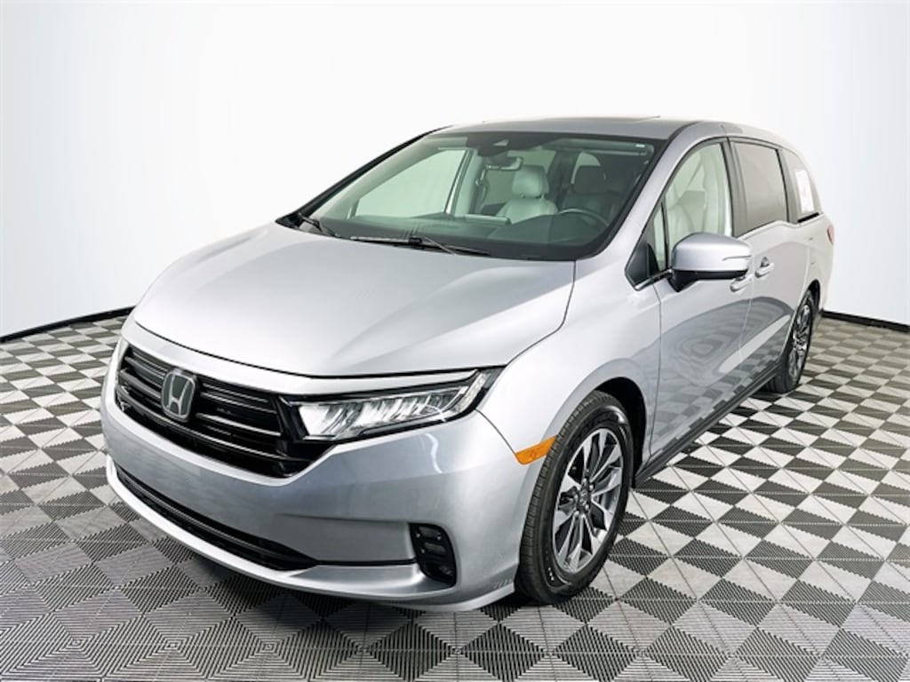 2024 Honda Odyssey EX-L 10-Speed Automatic 3.5L V6 SOHC i-VTEC 24V Lunar Silver Metallic 18" Machine-Finished Alloy Wheels, 3rd row seats: split-bench, 4-Wheel Disc Brakes, 7 Speakers, A/V remote: CabinControl, ABS brakes, Adaptive Cruise Control: Adaptive Cruise Control (ACC) with Low-Speed Follow, Apple CarPlay/Android Auto, Auto-dimming Rear-View mirror, Automatic temperature control, Blind Spot Information (BSI) System warning, Brake assist, Driver vanity mirror, Dual front impact airbags, Dual front side impact airbags, Electronic Stability Control, Exterior Parking Camera Rear, Four wheel independent suspension, Front fog lights, Fully automatic headlights, Garage door transmitter: HomeLink, Heated door mirrors, Heated Front Bucket Seats, Knee airbag, Lane departure: Lane Keeping Assist System (LKAS) active, Leather Seat Trim, Leather steering wheel, Low tire pressure warning, Memory seat, Occupant sensing airbag, Outside temperature display, Overhead airbag, Overhead console, Panic alarm, Power door mirrors, Power driver seat, Power Liftgate, Power moonroof, Power passenger seat, Power steering, Power windows, Radio: 160-Watt AM/FM/HD/SiriusXM Audio System, Rear air conditioning, Rear window wiper, Reclining 3rd row seat, Remote keyless entry, Security system, Speed-sensing steering, Speed-Sensitive Wipers, Steering wheel mounted audio controls, Telescoping steering wheel, Tilt steering wheel, Traction control, Trip computer, Turn signal indicator mirrors, Variably intermittent wipers.