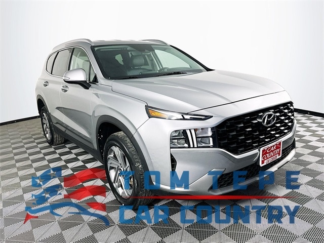 2023 Hyundai Santa Fe SEL 8-Speed Automatic with SHIFTRONIC 2.5L I4 Shimmering Silver Pearl **RECENT ARRIVAL**, Bluetooth, Carfax One-Owner, Santa Fe SEL, 2.5L I4, AWD, Shimmering Silver Pearl, Black w/Stain-Resistant Cloth Seat Trim, 18" x 7.5J Alloy Wheels, 4-Wheel Disc Brakes, 6 Speakers, ABS brakes, Apple CarPlay & Android Auto, Auto High-beam Headlights, Automatic temperature control, Brake assist, Dual front impact airbags, Dual front side impact airbags, Exterior Parking Camera Rear, Four wheel independent suspension, Front Center Armrest, Fully automatic headlights, Heated door mirrors, Heated Front Bucket Seats, Leather steering wheel, Low tire pressure warning, Navigation System, Occupant sensing airbag, Outside temperature display, Overhead airbag, Overhead console, Power door mirrors, Power driver seat, Power Liftgate, Power steering, Power windows, Radio: AM/FM Display Audio, Rear window wiper, Remote keyless entry, Security system, Speed control, Speed-sensing steering, Stain-Resistant Cloth Seat Trim, Tachometer, Telescoping steering wheel, Tilt steering wheel, Traction control, Trip computer, Turn signal indicator mirrors, Variably intermittent wipers.