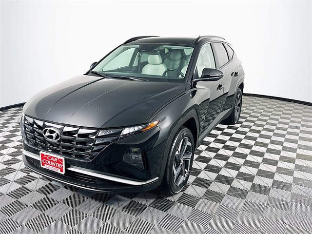 2023 Hyundai Tucson Hybrid SEL Convenience 6-Speed Automatic I4 Phantom Black Tucson Hybrid SEL Convenience, I4, 6-Speed Automatic, AWD, Phantom Black, Black w/H-Tex Seat Trim, 3.32 Axle Ratio, 4-Wheel Disc Brakes, 6 Speakers, ABS brakes, Apple CarPlay & Android Auto, Auto High-beam Headlights, Auto-dimming Rear-View mirror, Automatic temperature control, Brake assist, Dual front impact airbags, Dual front side impact airbags, Electronic Stability Control, Emergency communication system: Blue Link Connected Car Service (3-year complimentary subscription), Four wheel independent suspension, Fully automatic headlights, H-Tex Seat Trim, Heated door mirrors, Heated Front Bucket Seats, Low tire pressure warning, Navigation System, Occupant sensing airbag, Outside temperature display, Overhead airbag, Overhead console, Power door mirrors, Power driver seat, Power Liftgate, Power moonroof, Power steering, Power windows, Radio: AM/FM/HD/SiriusXM Audio System, Remote keyless entry, Security system, Speed control, Steering wheel mounted audio controls, Tachometer, Telescoping steering wheel, Tilt steering wheel, Traction control, Trip computer, Turn signal indicator mirrors, Variably intermittent wipers, Wheels: 19" x 7.5" J Machine-Face Finish Alloy.