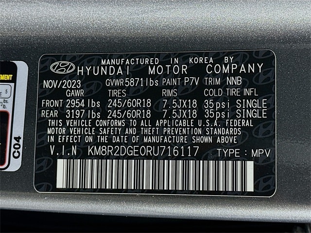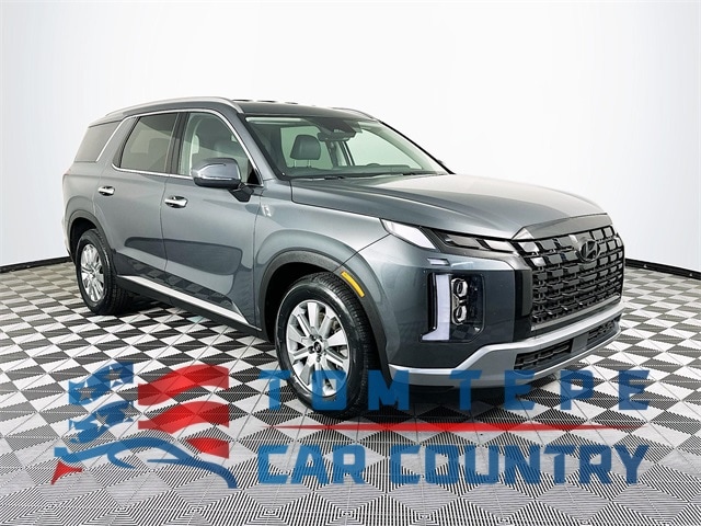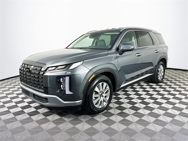 2024 Hyundai Palisade SEL 8-Speed Automatic with SHIFTRONIC V6 Steel Graphite Palisade SEL, 4D Sport Utility, V6, 8-Speed Automatic with SHIFTRONIC, AWD, Steel Graphite, Black w/H-Tex Leatherette Seat Trim, 3rd row seats: split-bench, 4-Wheel Disc Brakes, 6 Speakers, ABS brakes, Apple CarPlay & Android Auto, Auto High-beam Headlights, Auto-dimming door mirrors, Auto-dimming Rear-View mirror, Automatic temperature control, Brake assist, Dual front impact airbags, Dual front side impact airbags, Electronic Stability Control, Emergency communication system, Exterior Parking Camera Rear, Four wheel independent suspension, Fully automatic headlights, H-Tex Leatherette Seat Trim, Heated door mirrors, Heated Front Bucket Seats, Knee airbag, Low tire pressure warning, Navigation System, Occupant sensing airbag, Outside temperature display, Overhead airbag, Overhead console, Power door mirrors, Power driver seat, Power Liftgate, Power steering, Power windows, Radio: AM/FM/MP3 Audio System, Rear air conditioning, Rear side impact airbag, Remote keyless entry, Security system, Speed control, Speed-sensing steering, Steering wheel mounted audio controls, Tachometer, Telescoping steering wheel, Tilt steering wheel, Traction control, Turn signal indicator mirrors, Variably intermittent wipers, Wheels: 18" x 7.5J Painted Finish Alloy.