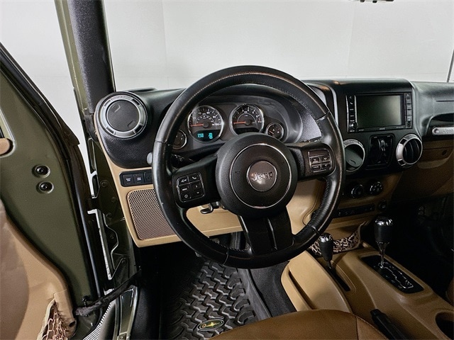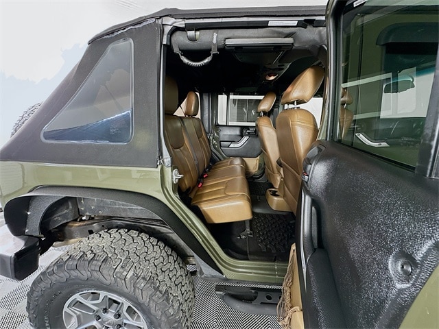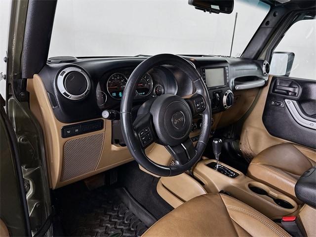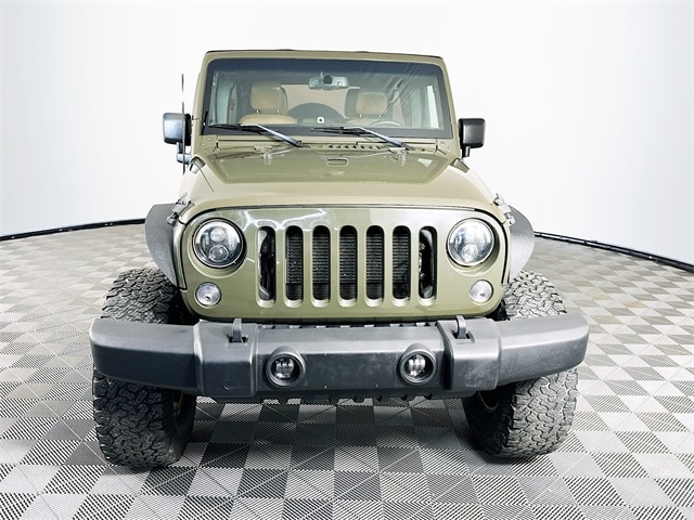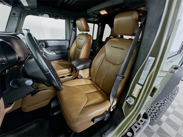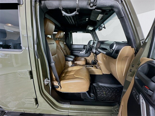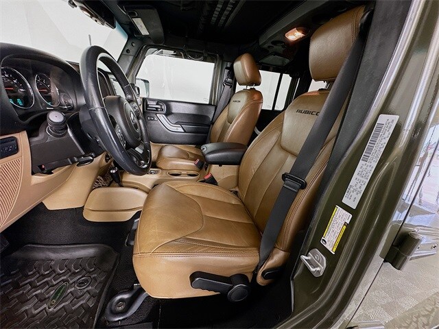 2015 Jeep Wrangler Unlimited Rubicon 5-Speed Automatic 3.6L V6 24V VVT Tank Clearcoat Odometer is 41066 miles below market average! Priced below KBB Fair Purchase Price! **RECENT ARRIVAL**, Bluetooth, Carfax One-Owner, Wrangler Unlimited Rubicon, 3.6L V6 24V VVT, 5-Speed Automatic, 4WD, Tank Clearcoat, Dark Saddle/Black w/Cloth Bucket Seats or Leather Trimmed Bucket Seats, 17" x 7.5" Polished Mineral Gray Wheels, 4-Wheel Disc Brakes, 4.10 Rear Axle Ratio, 40GB Hard Drive w/28GB Available, 5-Year SIRIUSXM Travel Link Service, 6.5" Touch Screen Display, 8 Speakers, ABS brakes, Air Conditioning, Audio Jack Input for Mobile Devices, Auto-dimming Rear-View mirror, Brake assist, Connectivity Group, Driver Height Adjuster Seat, Dual front impact airbags, Electronic Stability Control, Front Bucket Seats, Front Center Armrest w/Storage, Front fog lights, Front Seat Back Map Pockets, Fully automatic headlights, GPS Navigation, Heated door mirrors, Heated Front Seats, Integrated roll-over protection, Leather steering wheel, Leather Trimmed Bucket Seats, Low tire pressure warning, Occupant sensing airbag, Outside temperature display, Passenger vanity mirror, Performance Suspension, Power door mirrors, Power steering, Power windows, Quick Order Package 24R, Radio: Uconnect 430N CD/DVD/MP3/HDD/NAV, Remote keyless entry, Remote Start System, Remote USB Port, Security system, SIRIUSXM Travel Link, Speed control, Steering wheel mounted audio controls, Sunrider Soft Top, Tachometer, Tilt steering wheel, Tire Pressure Monitoring Display, Traction control, Trip computer, Variably intermittent wipers, Vehicle Information Center.