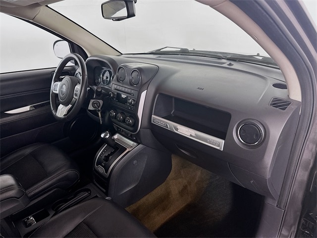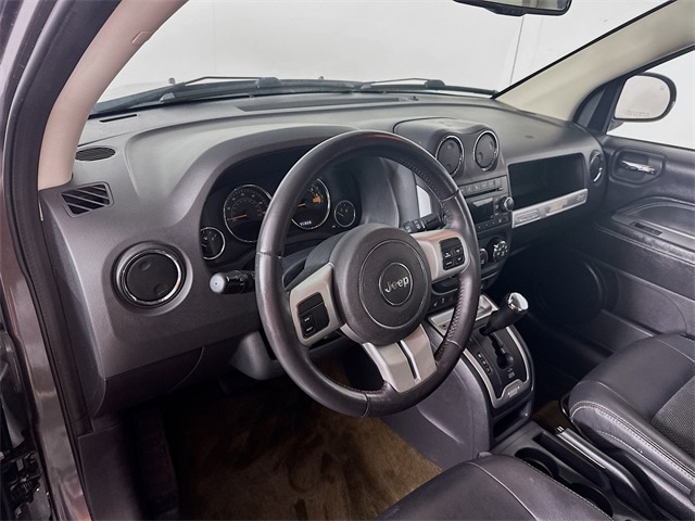 Inside, this Compass keeps things cozy with heated front seats, a leather-wrapped steering wheel, and auto-dimming rear-view mirror. Settle into the front bucket seats and enjoy intuitive controls that keep everything within reach.