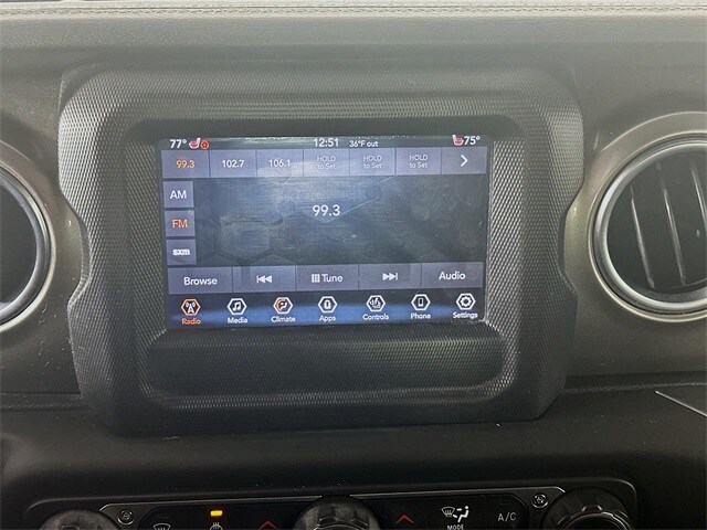 Comfort and convenience elevate every mile. The Cold Weather Group brings heated front seats and a heated steering wheel, perfect for early school runs and chilly tailgates. Automatic temperature control keeps the cabin steady, while the Black three-piece hard top makes open-air moments simple. The Trailer Tow and HD Electrical Group with Class II receiver hitch, 7 and 4-pin wiring, high-output alternator, 700 amp battery, and auxiliary switches gives you a ready-to-outfit platform for light towing and future accessories.