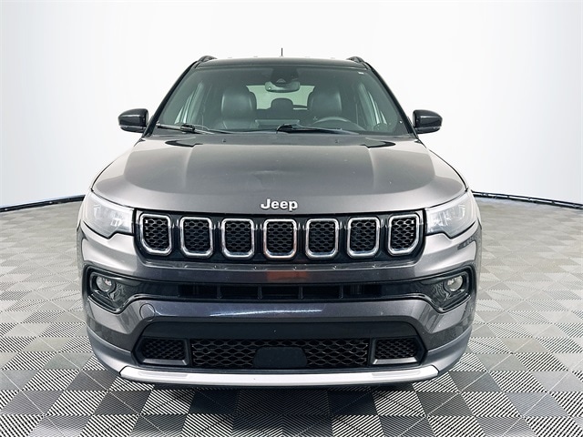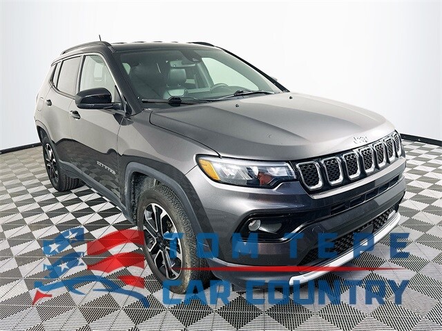 2023 Jeep Compass Limited 8-Speed Automatic 2.0L I4 DOHC Granite Crystal Metallic Clearcoat Priced below KBB Fair Purchase Price! **RECENT ARRIVAL**, Bluetooth, Carfax One-Owner, Compass Limited, 2.0L I4 DOHC, 4WD, Granite Crystal Metallic Clearcoat, Black w/Leatherette Seats, 4-Wheel Disc Brakes, 6 Speakers, ABS brakes, Auto-dimming Rear-View mirror, Automatic temperature control, Brake assist, Dual front impact airbags, Dual front side impact airbags, Electronic Stability Control, Four wheel independent suspension, Front Bucket Seats, Front Center Armrest w/Storage, Front fog lights, Fully automatic headlights, Heated door mirrors, Heated front seats, Heated steering wheel, Knee airbag, Leather Shift Knob, Leatherette Seats, Low tire pressure warning, Occupant sensing airbag, Outside temperature display, Overhead airbag, Overhead console, ParkView Rear Back-Up Camera, Power door mirrors, Power driver seat, Power steering, Power windows, Quick Order Package 29G, Radio: Uconnect 5 w/10.1" Display, Rain sensing wipers, Rear window wiper, Remote keyless entry, Security system, Speed control, Steering wheel mounted audio controls, Tachometer, Telescoping steering wheel, Tilt steering wheel, Traction control, Turn signal indicator mirrors, Variably intermittent wipers, Wheels: 18" x 7" Painted Diamond Cut Aluminum.
