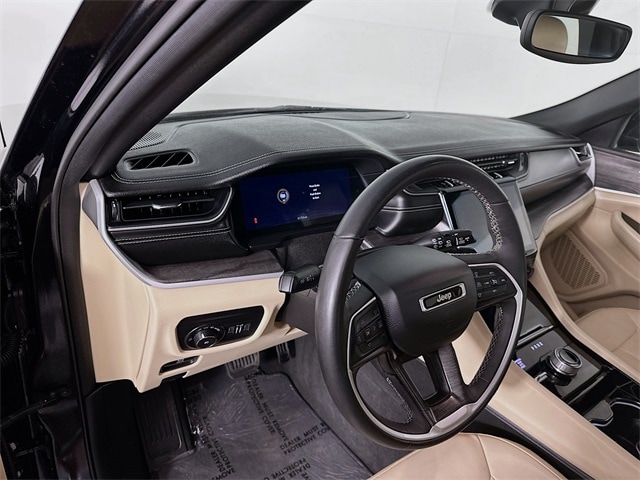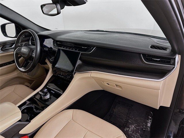 2023 Jeep Grand Cherokee Limited 8-Speed Automatic 3.6L V6 24V VVT Diamond Black Crystal Pearlcoat Priced below KBB Fair Purchase Price! Carfax One-Owner, Grand Cherokee Limited, 3.6L V6 24V VVT, 8-Speed Automatic, 4WD, Diamond Black Crystal Pearlcoat, Wicker Beige/Black Artificial Leather, 3.45 Rear Axle Ratio, 4-Wheel Disc Brakes, ABS brakes, Active Noise Control System, Automatic temperature control, Brake assist, Capri Leatherette Seats, Dual front impact airbags, Dual front side impact airbags, Dual-Pane Panoramic Sunroof, Electronic Stability Control, Emergency communication system, Four wheel independent suspension, Front Bucket Seats, Front Center Armrest w/Storage, Front fog lights, Fully automatic headlights, Garage door transmitter, Heated door mirrors, Heated front seats, Heated rear seats, Heated steering wheel, Knee airbag, Low tire pressure warning, Memory seat, Navigation System, Occupant sensing airbag, Outside temperature display, Overhead airbag, Overhead console, ParkView Rear Back-Up Camera, Power door mirrors, Power driver seat, Power Liftgate, Power passenger seat, Power steering, Power windows, Quick Order Package 23E, Radio: Uconnect 5 Nav w/10.1" Display, Rear window defroster, Remote keyless entry, Security system, Speed control, Speed-Sensitive Wipers, Steering wheel mounted audio controls, Telescoping steering wheel, Tilt steering wheel, Traction control, Trip computer, Turn signal indicator mirrors, Variably intermittent wipers, Wheels: 18" x 8" Fully Painted Aluminum.