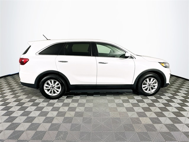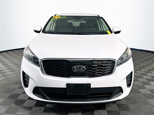2019 Kia Sorento L 6-Speed Automatic with Sportmatic I4 Snow White Pearl Odometer is 52723 miles below market average! Carfax One-Owner, Sorento L, Snow White Pearl, Satin Black w/YES Essentials Cloth Seat Trim, 17" x 7.0" Alloy Wheels, 3rd row seats: split-bench, 4-Wheel Disc Brakes, 6 Speakers, ABS brakes, Air Conditioning, Apple CarPlay & Android Auto, Brake assist, Dual front impact airbags, Dual front side impact airbags, Electronic Stability Control, Exterior Parking Camera Rear, Four wheel independent suspension, Front Bucket Seats, Front Center Armrest, Fully automatic headlights, Heated door mirrors, Low tire pressure warning, Occupant sensing airbag, Outside temperature display, Overhead airbag, Overhead console, Power door mirrors, Power steering, Power windows, Radio: UVO Play w/AM/FM/MP3, Remote keyless entry, Security system, Speed control, Speed-sensing steering, Steering wheel mounted audio controls, Tachometer, Telescoping steering wheel, Tilt steering wheel, Traction control, Turn signal indicator mirrors, Variably intermittent wipers, YES Essentials Cloth Seat Trim.