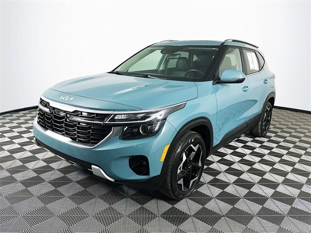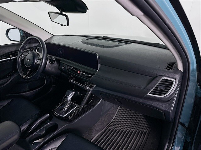 2024 Kia Seltos EX CVT 2.0L I4 MPI Pluton Blue Carfax One-Owner, Seltos EX, 2.0L I4 MPI, AWD, Pluton Blue, Black w/Sofino Premium Leatherette Seat Trim, 4-Wheel Disc Brakes, ABS brakes, Apple CarPlay & Android Auto, Auto High-beam Headlights, Automatic temperature control, Brake assist, Dual front side impact airbags, Electronic Stability Control, Emergency communication system: 911 Connect, Exterior Parking Camera Rear, Four wheel independent suspension, Front fog lights, Fully automatic headlights, Heated door mirrors, Heated Front Bucket Seats, Leather Shift Knob, Leather steering wheel, Low tire pressure warning, Navigation System, Occupant sensing airbag, Outside temperature display, Overhead console, Power door mirrors, Power driver seat, Power moonroof, Power steering, Power windows, Radio: AM/FM/HD/Satellite Display System w/Navigation, Rear window wiper, Remote keyless entry, Security system, Sofino Premium Leatherette Seat Trim, Speed control, Speed-sensing steering, Steering wheel mounted audio controls, Tachometer, Telescoping steering wheel, Tilt steering wheel, Traction control, Trip computer, Turn signal indicator mirrors, Variably intermittent wipers, Wheels: 17" Alloy w/Machined Finish.