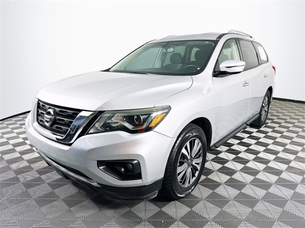 2019 Nissan Pathfinder SV CVT with Xtronic V6 Brilliant Silver Metallic Odometer is 57584 miles below market average! Pathfinder SV, V6, Brilliant Silver Metallic, Charcoal w/Cloth Seating Surfaces, 3rd row seats: bench, 4-Wheel Disc Brakes, 6 Speakers, ABS brakes, Auto-dimming Rear-View mirror, Automatic temperature control, Blind Spot Warning, Brake assist, Dual front impact airbags, Dual front side impact airbags, Electronic Stability Control, Four wheel independent suspension, Front Center Armrest, Front fog lights, Fully automatic headlights, Garage door transmitter: HomeLink, Leather Shift Knob, Leather steering wheel, Low tire pressure warning, Occupant sensing airbag, Outside temperature display, Overhead airbag, Overhead console, Power door mirrors, Power driver seat, Power steering, Power windows, Radio: AM/FM/CD Audio System w/NissanConnect, Rear air conditioning, Rear Parking Sensors, Rear window wiper, Remote keyless entry, Security system, Speed control, Speed-sensing steering, Speed-Sensitive Wipers, Steering wheel mounted audio controls, Telescoping steering wheel, Tilt steering wheel, Traction control, Turn signal indicator mirrors, Variably intermittent wipers, Wheels: 18" x 7.5 J Machined Aluminum-Alloy.