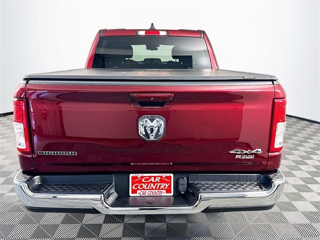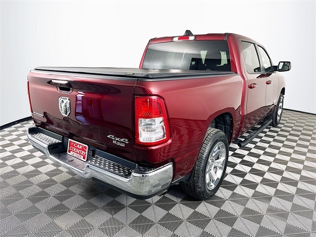 2022 Ram 1500 Big Horn/Lone Star 8-Speed Automatic 3.6L V6 24V VVT Delmonico Red Pearlcoat Odometer is 13820 miles below market average! Carfax One-Owner, 1500 Big Horn/Lone Star, 4D Crew Cab, 3.6L V6 24V VVT, 8-Speed Automatic, 4WD, Delmonico Red Pearlcoat, Black w/Cloth High-Back Bucket Seats, 3.55 Rear Axle Ratio, 4 Way Front Headrests, 4-Wheel Disc Brakes, 48V Belt Starter Generator, ABS brakes, Air Conditioning, Brake assist, Convex Wide-Angle Mirror Insert, Dual front impact airbags, Dual front side impact airbags, Electronic Stability Control, Emergency communication system: SiriusXM Guardian, Front fog lights, Front wheel independent suspension, Fully automatic headlights, GPS Antenna Input, Heated door mirrors, Heavy-Duty Engine Cooling, Integrated Voice Command w/Bluetooth, Leather steering wheel, Low tire pressure warning, Occupant sensing airbag, Overhead airbag, Panic alarm, ParkView Rear Back-Up Camera, Power door mirrors, Power steering, Power windows, Radio: Uconnect 3 w/5" Display, Rear step bumper, Remote keyless entry, Remote Start System, Speed control, Steering wheel mounted audio controls, Traction control, Wheels: 20" x 9" Aluminum Chrome Clad (WRK).