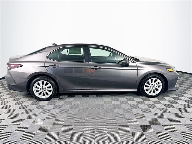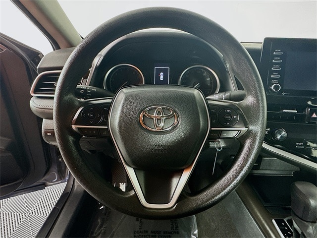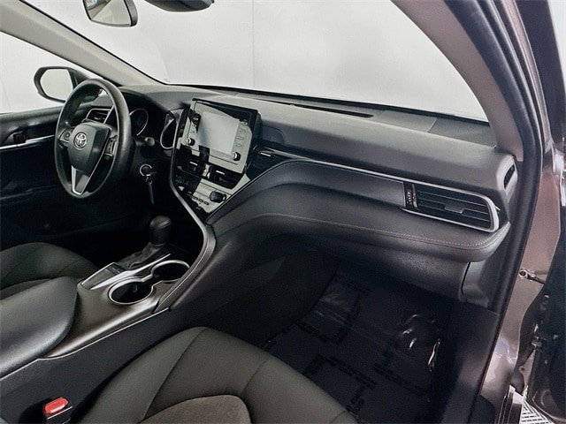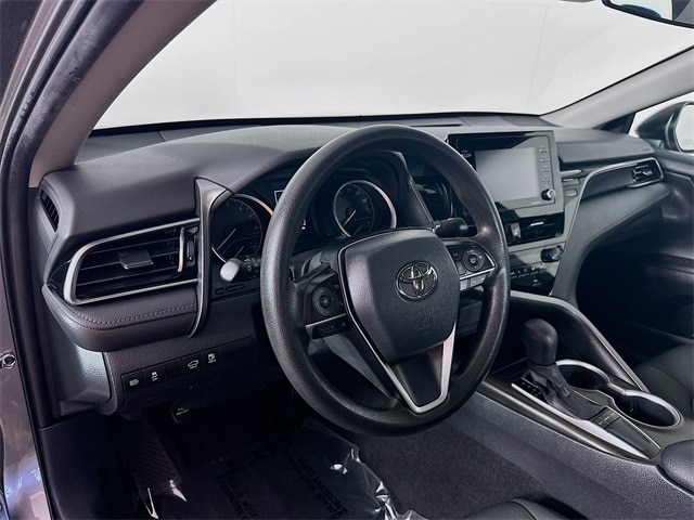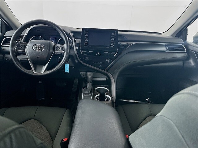2023 Toyota Camry LE 8-Speed Automatic 2.5L I4 DOHC 16V Predawn Gray Mica Carfax One-Owner, Camry LE, 2.5L I4 DOHC 16V, Predawn Gray Mica, Black w/Fabric Seat Trim, 4-Wheel Disc Brakes, 6 Speakers, 7.5J x 17" Alloy Wheels, ABS brakes, AM/FM radio: SiriusXM, Apple CarPlay/Android Auto, Auto High-beam Headlights, Automatic temperature control, Brake assist, Dual front impact airbags, Dual front side impact airbags, Electronic Stability Control, Emergency communication system: Safety Connect (1-year trial), Exterior Parking Camera Rear, Four wheel independent suspension, Front Bucket Seats, Front Center Armrest, Fully automatic headlights, Knee airbag, Low tire pressure warning, Occupant sensing airbag, Outside temperature display, Overhead airbag, Overhead console, Power door mirrors, Power driver seat, Power steering, Power windows, Rear side impact airbag, Remote keyless entry, Security system, Speed control, Speed-sensing steering, Steering wheel mounted audio controls, Tachometer, Telescoping steering wheel, Tilt steering wheel, Traction control, Variably intermittent wipers.