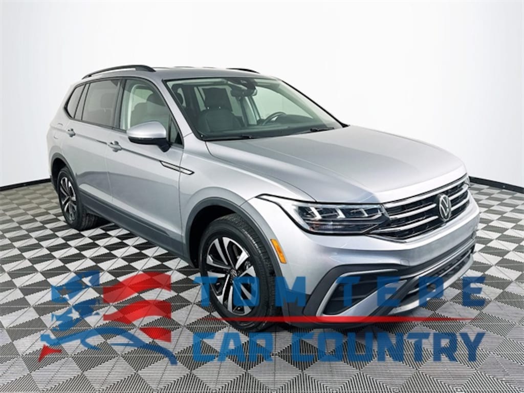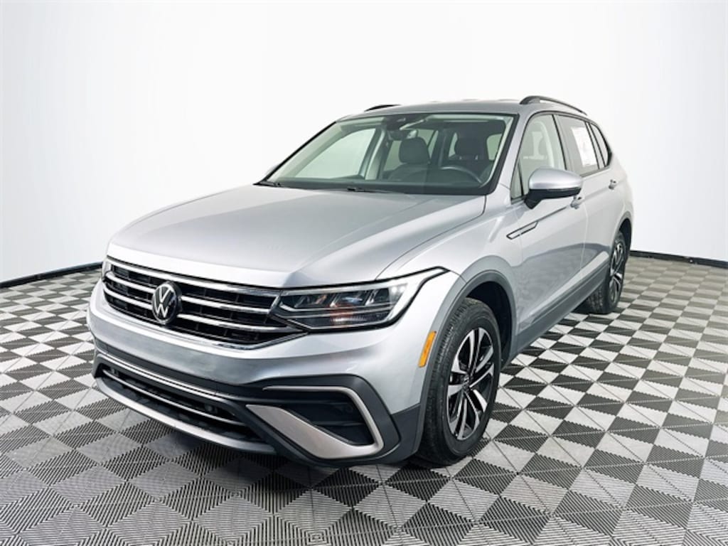 2023 Volkswagen Tiguan 2.0T S 8-Speed Automatic with Tiptronic 2.0L TSI DOHC Platinum Gray Metallic Odometer is 4922 miles below market average! Carfax One-Owner, 3rd row seats: bench, 4-Wheel Disc Brakes, 4-Wheel Independent Suspension, 6 Speakers, ABS brakes, Air Conditioning, Brake assist, Delay-off headlights, Dual front impact airbags, Dual front side impact airbags, Electronic Stability Control, Emergency communication system: VW Car-Net Safe & Secure 5-year, Exterior Parking Camera Rear, Forward collision: FCW w/Autonomous Emergency Braking mitigation, Four wheel independent suspension, Fully automatic headlights, Heated door mirrors, Heated Front Bucket Seats, Leather Shift Knob, Low tire pressure warning, Occupant sensing airbag, Outside temperature display, Overhead airbag, Overhead console, Panic alarm, Power door mirrors, Power windows, Radio: Composition Color AM/FM, Rear seat center armrest, Rear window wiper, Remote keyless entry, Speed control, Speed-sensing steering, Steering wheel mounted audio controls, Telescoping steering wheel, Tilt steering wheel, Traction control, Turn signal indicator mirrors, Variably intermittent wipers, Wheels: 17" 2-Tone Machined Twin 5-Spoke Alloy.